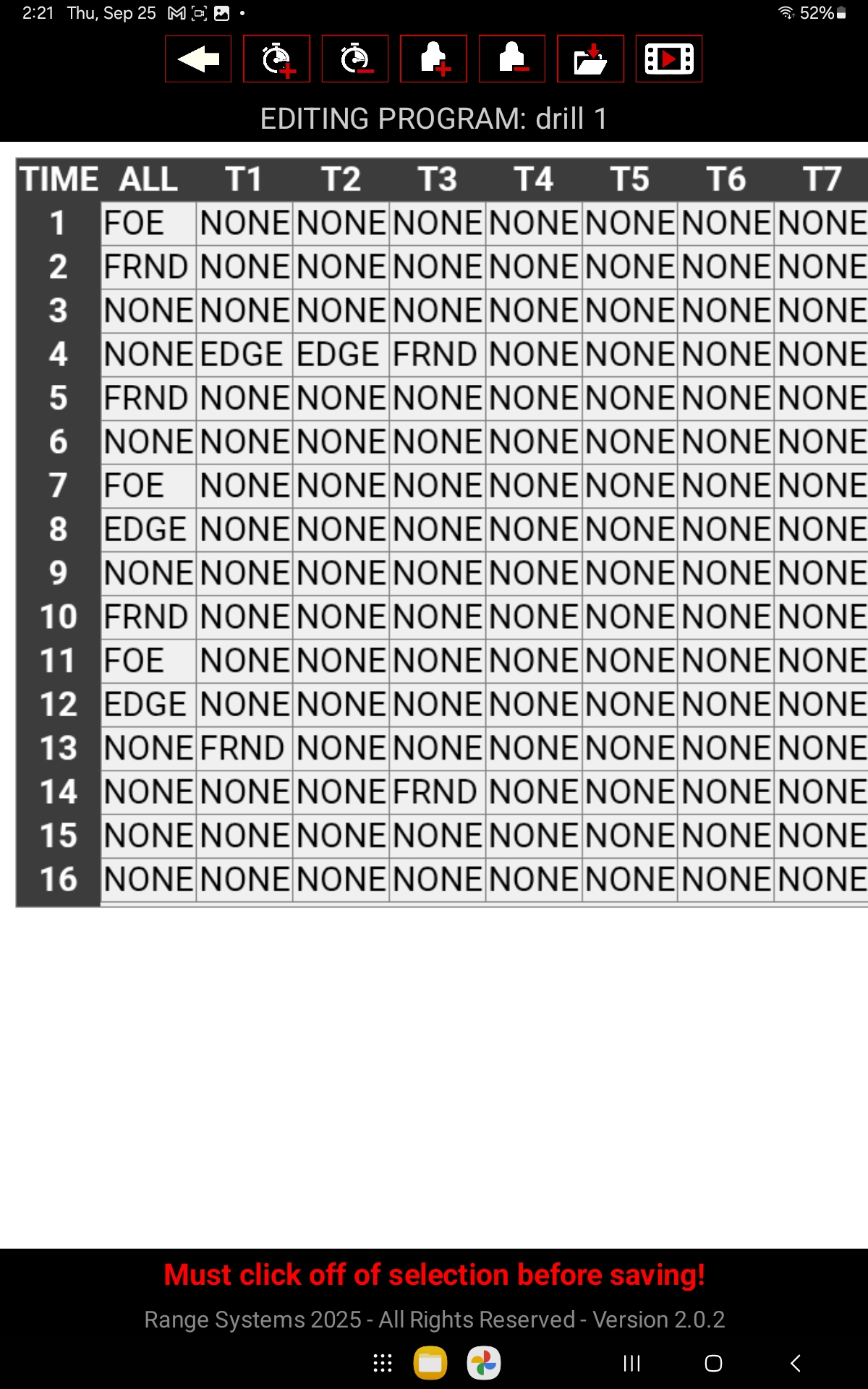 Each row = 1 second in the program.