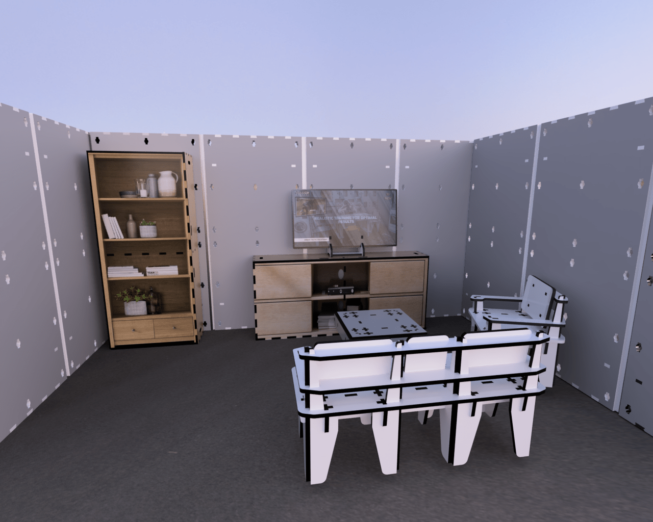 3D functional and printed furniture and outdoor items developed to create a true-to-life environment for effective tactical and situational combat training. The furniture items are arranged in Kits for each room in a household. Besides that, you can move the separated items (kits’ components) around as per your training requirements. This creates unparalleled flexibility and fast change of training scenes and scenarios.